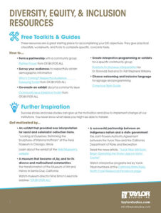 Are you seeking to expand your audience? Do you want to tell stories in your exhibit that you haven’t told before? These DEI resources will give you concrete tools to get started.